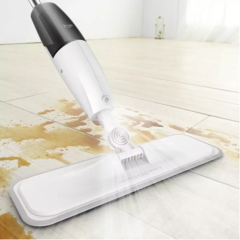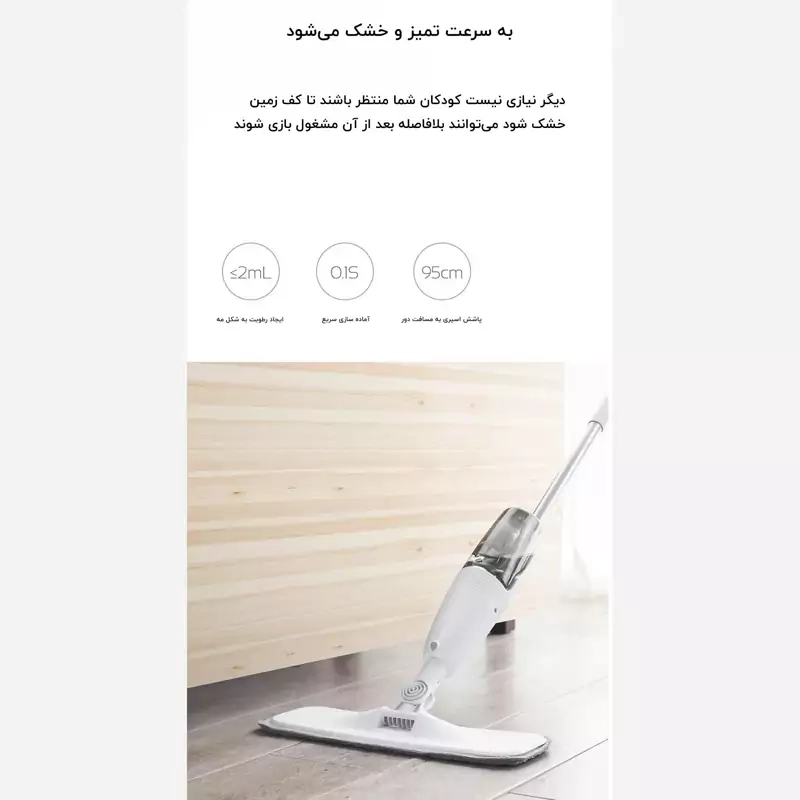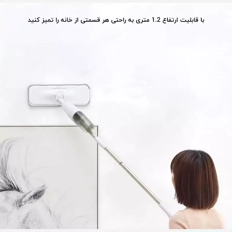تِی کشیدن سطوح مختلف امری دشوار و خسته کننده است. زیرا شما مجبور هستید که دائما پد تِی زمین شوی را بشویید. همچنین گاهی اوقات لک آب روی سطوح باقی می ماند و ظاهری نامناسب را به خانه شما می دهد. با خرید تی زمین شوی اسپری دار شیائومی درما مدل TB500 دیگر این مشکلات را نخواهید داشت. این وسیله در کوتاه ترین زمان ممکن کف خانه یا محل کار شما را پاکیزه و درخشان می سازد. همچنین با استفاده از این وسیله دیگر نیازی نیست که نگران لغزنده شدن سطوح باشید. در این مقاله مشخصات و ویژگی های این محصول معرفی شده است. معرفی عملکرد تی زمین شوی اسپری دار شیائومی درما مدل TB500 زمین شوی درما مدل TB500 محصولی ایده آل برای کسانی است که به تمیزی کف خانه خود اهمیت می دهند. این وسیله کاربردی کار شستشو و تمیز کردن زمین را برای شما آسان می کند. هنگامی که از این کف شوی اسپری دار استفاده می کنید، آب روی زمین به صورت مه پاشیده می شود. یکی دیگر از قابلیت های زمین شوی شیائومی جمع کردن رطوبت حاصل از آب از روی زمین است. این ویژگی عاملی برای خشک شدن سریع کف به شمار می رود. بنابراین دیگر نیازی نیست که کودکان برای خشک شدن سطوح منتظر بمانند؛ آن ها بلافاصله می توانند به بازی خود بپردازند. همچنین از آنجایی که برای پاشیدن آب روی زمین از اسپری استفاده می شود، در مصرف آب نیز صرفه جویی می گردد. مشخصات ظاهری تی زمین شوی اسپری دار TB500 تی زمین شوی اسپری دار شیائومی مدل TB500 از طراحی ساده و مینیمال پیروی می کند. همچنین همه افراد می توانند به واسطه ساختار ارگونومیک این محصول به راحتی آن را در دست بگیرند. بدنه این دستگاه نیز از ترکیب پلاستیک مقاوم ABS و فلز و به رنگ سفید ساخته شده است. تی کف شوی اسپری دار کمپانی درما با وزنی برابر با 750 گرم ساخته شده است. جالب است که بدانید، این وزن معادل وزن سه سیب است. بنابراین حتی افراد لاغر نیز در حین استفاده از این محصول به دلیل وزن سبک آن دچار خستگی نمی شوند. همچنین در هنگام کار با این زمین شوی به کمر و شانه های شما فشار زیادی وارد نمی گردد. ابعاد این تی زمین شوی اسپری دار شیائومی درما مدل TB500 نیز بسیار جمع و جور و برابر با 124*355*120 سانتی متر است که به راحتی در محیط های کوچک نیز جا می شود و فضای زیادی را اشغال نمی کند. در ضمن وزن این دستگاه به گونه ای است که به سرعت می توانید کل یک اتاق را تِی بکشید. مخزن آب در نظر گرفته شده برای این دستگاه نیز ظرفیتی برابر با 350 میلی لیتر دارد. این ظرفیت به شما اجازه می دهد که محیطی به مساحت بیش از 100 متر مربع را تی بکشید. در این صورت نیازی نیست که دائما پد تی را آبکشی کنید. این موضوع علاوه بر افزایش سهولت روند نظافت سطوح باعث صرفه جویی در زمان شما نیز می شود. انتهای میله تی زمین شوی اسپری دار شیائومی درما مدل TB500 دو گیره برای نگهداری سر تی تعبیه شده است. 8 بخش قلاب مانند نیز در پشت تی وجود دارد که پارچه را به خوبی نگه می دارد. این نوع قرارگیری پارچه تمیزکننده به شما کمک می کند که کف زمین را به طور موثر تی بکشید. ویژگی های کف شوی شیائومی درما TB500 راه اندازی این زمین شوی درما نیز بسیار آسان است و در مدت زمان کوتاهی در عرض 1 ثانیه می توانید آن را آماده کار کنید. قدرت اسپری این محصول نیز به اندازه ای است که می تواند قطرات آب را تا فاصله 95 سانتی متری بپاشد. برای بدست آوردن منطقه اسپری گسترده و یکنواخت باید میله شستشو را تنظیم کنید. افزایش میزان محدوده پاشش آب باعث افزایش سرعت نظافت سطوح و صرفه جویی در وقت و انرژی شما می شود. این محصول از دسته لوازم خانگی شیائومی یک سری تی قابل چرخش 360 درجه با ضخامت 3 سانتی متر نیز تعبیه شده است. این قابلیت به شما کمک می کند که تی زمین شوی اسپری دار شیائومی درما مدل TB500 را در هر جهتی حرکت دهید. از این رو در حین نظافت تا حیطه 1.2 متری گوشه و کنارهای محیط را تمیز می کنید. بنابراین همه سطوح حتی زیر میز و مبل ها نیز به خوبی تمیز می شوند. همچنین علاوه بر آب امکان ریختن مواد ضدعفونی کننده یا شوینده های ر