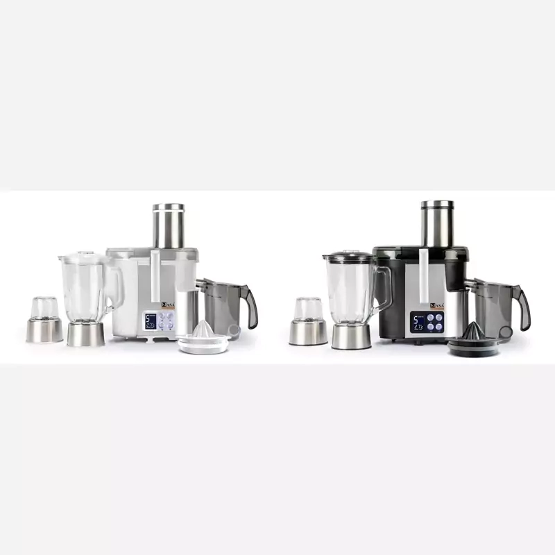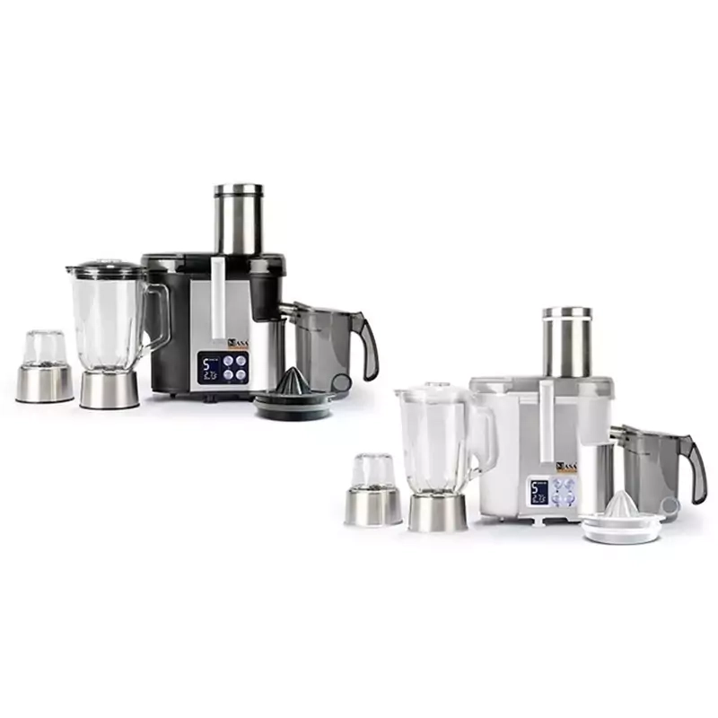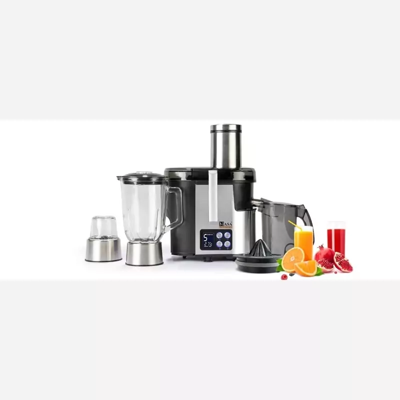 آبمیوه گیری ناسا الکتریک NS-945 محصولی کاربردی و چند کاره است، که از کاربردها و قابلیتهای زیادی پشتیبانی میکند. چند کاره بودن این دستگاه به عملکردهای آبمیوه گیر، آب مرکبات گیر، آسیاب و مخلوط کن اشاره دارد. تمام این قابلیتها در یک دستگاه جمع شدهاند و از آن محصولی همه کاره ساختهاند. این آبمیوه گیری با کیفیت دارای موتوری قدرتمند با حداکثر توان 1500 وات بوده، که امکان حداکثر بهرهوری از این محصول را فراهم آورده است. قابلیت تنظیم سرعت در 5 سطح مختلف در کنار عملکرد پالس PULSE نشان از کارآیی بالای دستگاه دارد، که متناسب با نوع و ساختار مواد اولیه میتوانید سطح سرعت را انتخاب نمایید.