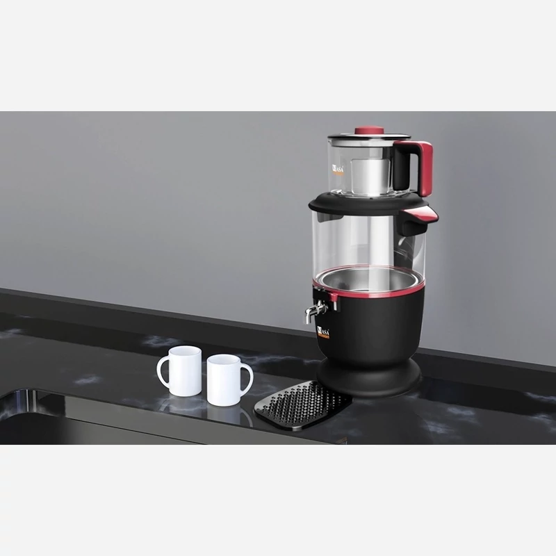 یک شیر خروجی از جنس استیل بر روی بدنه کتری قرار گرفته است، که بصورت دستی باز و بسته میشود. این شیر از نوع ضد چکه بوده و با کمک مهار کننده میتوان آن را باز و بسته نمود. درپوش و دستههایی که برای این کتری در نظر گرفته شدهاند، از جنس پلاستیک با کیفیت میباشند. دستگیرههای تعبیه شده حمل و جابجایی چای ساز را راحت کردهاند. درپوش نیز امکان قرار گیری قوری بر بالای کتری را فراهم آورده است. پایه سیلیکونی که در زیر سماور قرار گرفته از نوع ضد لغزش بوده و مانع از لغزش چای ساز میشود. همچنین چراغ نشانگری که برای چای ساز طراحی شده، شما را از وضعیت خاموش یا روشن بودن دستگاه مطلع خواهد ساخت.
