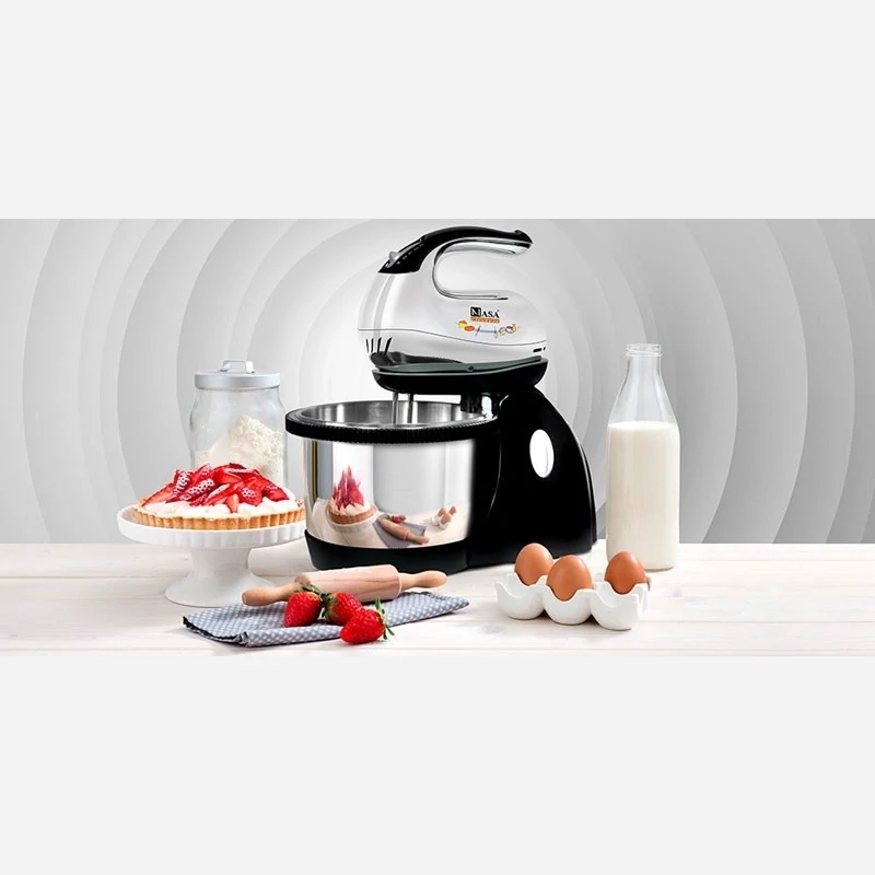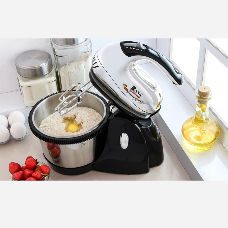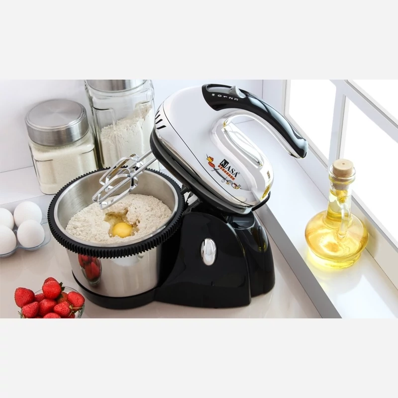 همزن کاسهدار چرخشی ناسا الکتریک NS-919 همزن کاسه دار چرخشی ناسا الکتریک مدل NS-919 موجود در فروشگاه اینترنتی ناسا الکتریک یکی از آن دسته محصولات با کیفیتی است که برای پختن انواع کیک و شیرینی به کار میرود. وجود همزنی که تهیه شیرینی و کیک و خمیر و …. را راحت خواهد کرد، یکی از دستگاههای ضروری در آشپزخانه است. این همزن برقی از نوع چرخشی بوده و قابلیت چرخش سه بعدی کاسه را دارد، این طراحی و قابلیت خاص به منظور سرعت بخشیدن به فرآیند یکنواخت شدن خمیر و مواد کیک و … است. همزن NS-919 یکی از همزنهای قدرتمندی است که دارای کاسهای 3 لیتری از جنس استیل ضد زنگ میباشد. گفتنی است که به همراه همزن ناسا الکتریک NS-919 دو سری مختلف میلهی خمیرزن و میلهی همزن عرضه میشود که هر کدام کاربرد و کارآیی خاص خود را دارند. برای استفادهی بهتر و کاربردیتر از دستگاه همزن باید به نوع سری همزن و نوع مواد داخل کاسه دقت کنید. این همزن برقی دارای موتوری با توان مصرفی 350 وات است و قابلیت تنظیم سرعت در 5 سطح مختلف به همراه عملکرد توربو “TURBO” را دارد. سرعت انتخابی همزن بسته به نوع مواد غذایی داخل کاسه متفاوت میباشد و باید حتماً دفترچه راهنمای محصول عمل کنید. در کنار این قابلیت تنظیم سرعت ویژگی دیگری که برای این دستگاه در نظر گرفته شده است، عملکرد توربو “TURBO” نام دارد. عملکرد توربو در واقع با کمک کلید کشویی که بر روی دستهی همزن تعبیه شده است، انتخاب میشود. کلیدی که بر روی بدنهی دستگاه قرار گرفته برای آزادسازی کاسهی همزن به کار میرود و برای جدا کردن کاسه و تخلیهی آن کافی است که کلید را فشار دهید، تا کاسه از همزن جدا شود. طراحی بدنه و مشخصات فنی جنس بدنه همزن کاسهدار ناسا الکتریک مدل NS-919 از پلاستیک با روکش کروم میباشد. این جنس بدنه موجب میشود که تمیز کردن محصول به راحتی ممکن شود. همچنین روکش استیل ظاهر زیبا و منحصر به فردی به محصول بخشیده است. بر روی دستهی همزن دکمه کشویی قرار دارد که دارای سه درجه کند، متوسط و تند برای تنظیم سرعت میباشد. گفتنی است که دسته از طراحی ارگونومیکی برخوردار است و می توان به راحتی و بدون اذیت شدن دست با آن کار کرد. کلید کشویی تعبیه شده بر روی دسته امکان تنظیم سرعت در سه سطح را فراهم آورده و همچنین برای آزاد سازی میله ها نیز قابل استفاده است. هر کدام از این درجه بندی ها کاربردهای خاص خود را دارند. از دور کند میتوان در انتها و ابتدای کار هم زدن استفاده کنیم تا مخلوط کاملا یکدست شود. دور متوسط برای مخلوط هایی که نیاز به هم زدن بیشتر دارند کاربرد دارد. همچنین از دور تند برای آماده سازی مایههایی که نیاز به پف کردن دارند استفاده میشود. کاسه و مشخصات آن همزن کاسهدار ناسا الکتریک NS-919 دارای یک همزن از جنس استیل ضد زنگ بوده و از کیفیت مطلوبی برخوردار است. ظرفیت کاسه حداکثر 3 لیتر بوده و می توانید حجم زیادی از خمیر را در هر بار استفاده با کمک آن تهیه نمایید. این کاسه به راحتی بر روی پایه ی همزن گذاشته شده و روی جای خود محکم کنید و مواد دلخواه را داخل کاسه بریزید. دکمه ای که بر روی بدنه ی دستگاه همزن تعبیه شده، برای آزادسازی کاسه استفاده می شود و با فشار دادن آن می توانید کاسه را از جایگاه خود آزاد کرده و بیرون آورید. یک ویژگی بسیار کاربردی این محصول، جدا شدن همزن از کاسه و پایه میباشد. این قابلیت موجب میشود که هم زن در تمامی شرایط قابل استفاده باشد، و میتوان از آن به عنوان یک همزن معمولی نیز استفاده نمائید. این خصوصیت کمک میکند تا برای حجم کم مواد نیز قابل استفاده بوده و کار شما را انجام دهد.