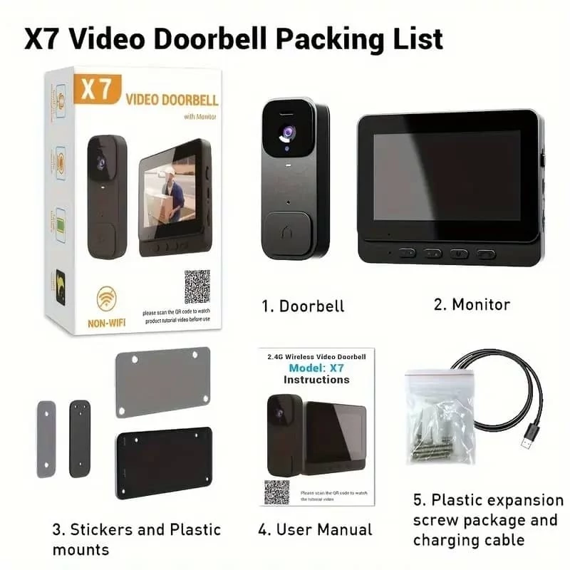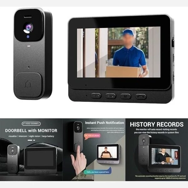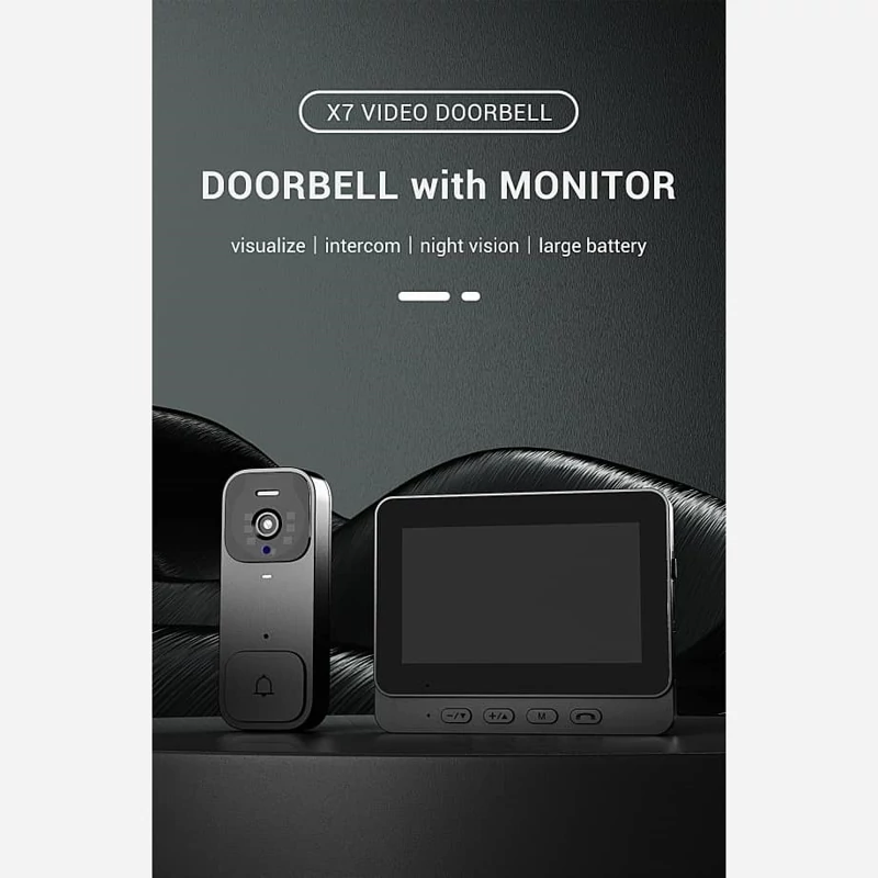 زنگ درب تصویری هوشمند بی سیم با مانیتور 4.3 اینچی مدل X7 بدون نیاز به WiFi