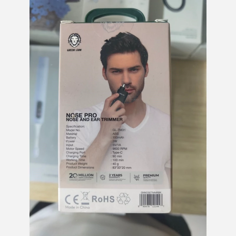 بررسی موزن گوش و بینی شارژی گرین لاین مدل GNNOSETMMR موزن گوش و بینی Green Lion مدل Nose Pro با تمرکز بر ایمنی و راحتی کاربر طراحی شده است. این دستگاه دارای موتور پرسرعت با 9600 دور در دقیقه و سری چرخشی 360 درجه است که در بدنهای مقاوم از جنس ABS قرار گرفته. امکان اصلاح سریع و نرم را فراهم میکند. تیغه قابل جداسازی، تمیز کردن را آسان کرده و سیستم محافظتی آن از تحریک پوست و بریدگی ناگهانی جلوگیری میکند. باتری 150 میلی آمپر ساعتی با شارژ سریع Type-C در مدت 90 دقیقه شارژ شده و تا 100 دقیقه کار میکند. این موزن با دو سطح سرعت قابل تنظیم، گزینهای کاربردی و راحت برای اصلاح شخصی محسوب میشود. بررسی طراحی و ساخت موزن گوش و بینی شارژی گرین لاین بدنه این ماشین اصلاح مو از پلاستیک مقاوم ABS ساخته شده که در برابر ضربه و رطوبت مقاوم است. طراحی سبک، ارگونومیک و خوشدست آن استفاده آسان در خانه یا سفر را فراهم میکند. همچنین سری چرخشی 360 درجه به شما اجازه میدهد تا اصلاحی دقیقتر و بدون درد را تجربه کنید. مشخصات فنی موزن گوش و بینی شارژی جنس بدنه: ABS ظرفیت باتری: 150 میلیآمپر توان مصرفی: 2 وات ولتاژ ورودی: 5 ولت / 1 آمپر سرعت موتور: 9600 دور در دقیقه نوع شارژ: پورت Type-C زمان شارژ: 90 دقیقه زمان استفاده مداوم: 100 دقیقه بررسی باتری این دستگاه از یک باتری داخلی با ظرفیت 150 میلیآمپر ساعت بهره میبرد که با توجه به کاربرد دستگاه، عملکردی بسیار رضایتبخش ارائه میدهد. این باتری تنها در مدت زمان 90 دقیقه به طور کامل شارژ میشود. پس از شارژ کامل، دستگاه میتواند تا 100 دقیقه به طور مداوم کار کند، که برای مصارف شخصی کاملاً کافی و حتی بیشتر از حد نیاز است. پورت شارژ موزن گوش و بینی Green Lion مدل Nose Pro به پورت شارژ Type-C مجهز شده است که از جمله مزایای مهم و مدرن این دستگاه به شمار میرود. استفاده از این پورت به کاربران اجازه میدهد تا با انواع کابلهای شارژ USB-C که امروزه بسیار رایج هستند، دستگاه را به راحتی شارژ کنند. در مقایسه با مدلهایی که هنوز از درگاه microUSB استفاده میکنند، پورت Type-C سرعت بیشتری در انتقال انرژی دارد و فرآیند شارژ را سریعتر و ایمنتر میسازد. همچنین طراحی دوطرفه این پورت باعث میشود اتصال کابل سادهتر انجام شود و دغدغهای بابت جهت اتصال وجود نداشته باشد. ویژگی های موزن گوش و بینی شارژی این محصول به یک باتری داخلی با ظرفیت مناسب مجهز شده که امکان استفاده طولانیمدت پس از هر بار شارژ را فراهم میکند. همچنین، شارژ شدن دستگاه از طریق پورت Type-C انجام میشود که هم سرعت بالایی در شارژ دارد و هم استفاده از آن بسیار آسان و متداول است. پشتیبانی از شارژ سریع باعث میشود زمان انتظار برای شارژ کامل دستگاه به حداقل برسد. مزایا معایب سری چرخشی 360 درجه تیغه قابل جداسازی برای شستوشوی دارای دو سطح سرعت برای کنترل بهتر شارژ سریع با پورت Type-C فاقد قابلیت ضدآب نداشتن پایه نگهدارنده یا کیف حمل عدم نمایشگر شارژ یا باتری