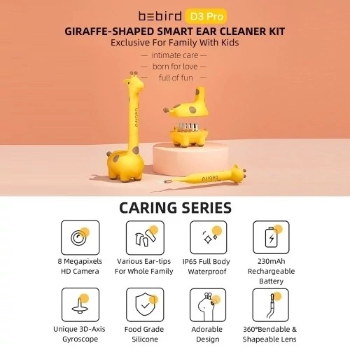 آندوسکوپ و گوش پاک کن کودک و بزرگسال برند شیائومی محصول جذاب آندوسکوپ گوش BEBIRD D3 Pro Ear Wax Removal Otoscope ، حذف کننده ی موم گوش به همراه دوربین جهت تصویربرداری، تمیزکننده ی گوش کودکان و بزرگسالان است. از این محصول فوق العاده می توان هم برای تمیز کردن موم های گوش و بررسی خشکی پوست، دندان ها و بینی استفاده کرد، این محصول حتی برای حیوانات هم کاربرد دارد. bebirdکمپانی یک شرکت مبتنی بر فناوری است که تحقیق و توسعه و تولید و فروش را ادغام می کند. تحقیقات و مطالعاتی بر پایه ی عشق و علاقه که تجربه ی عالی رو برای شما فراهم میکنند. ✅استفاده ی آسان این محصول تمیزکننده ی گوش، موم رابه راحتی از گوش جدا می کند آندوسکوپ طرح زرافه از سیلیکون ساخته شده و می توانید به صورت نشسته یا خوابیده از آن استفاده کنید. با این قابلیت استفاده به صورت خوابیده، در نوزادان هم میتوانید با خیالی آسوده برای تمیز کردن گوش با سری های کوچک آن استفاده کنید. ✅جعبه لوازم جادویی کوچک طراحی کوچک و جذاب که هم کودکان هم بزرگسالان در نگاه اول عاشقش می شوند. آندوسکوپ دارای 8 ابزار تمیزکننده ی گوش می باشد که میتواند لذت تمیزشدن گوش ها را به شما هدیه دهد، دارای قفل کودک در انتهای محصول که با چرخاندن انتهای آن قفل می شود. آندوسکوپ و گوش پاک کن کودک و بزرگسال برند شیائومی BEBIRD D3 Pro Ear Wax Removal Otoscope, 1080p با چرخاندن این قسمت قفل میشود ✅لنز دوربین با کیفیت 1080p دوربین این محصول (BEBIRD D3 pro) دارای لنز جمع کننده نور میباشد که کاملا اندازه مجرا گوش کودک میباشد و به راحتی میتوانید گوش کودکان خود را تمیز کنید. این محصول 800 وات دارای لنز جمع کننده ی نور، کاملا اندازه ی کانال گوش کودک، دارای عدسی قطره ای و راحت که تجربه ی فوق العاده ای را میتونید تجربه کنید. لنز سطح IP65 ضد آب میباشد که زمانی سطح گوش هم مرطوب باشد شما میتوانید از این آندوسکوپ استفاده کنید ✅ تکنولوژی تنظیم دما با بدن آندوسکوپ گوش با دمای بدن کودک مطابقت دارد تا دمای 25 درجه طبیعی مجرای گوش را ایجاد کند. دمای خیلی سرد یا خیلی گرم کودک شما را نسبت به حذف موم از گوش حساس میکند که منجر به ترس از تمیز کردن گوش شود. مناسب برای مجرای گوش کودک؛ زمانی که دمای بدن کودک پایین باشد گرم کننده به صورت خودکار روشن میشود و زمانی که دمای بدن ثابت است خنک کننده روشن میشود. آندوسکوپ گوش BEBIRD D3 pro ✅جنس سیلیکونی در آندوسکوپ گوش (BEBIRD D3 pro) از سیلیکون خالص استفاده شده است و بسیار ایمن میباشد و به راحتی میتوانید از آندوسکوپ استفاده کنید. لنز 360 درجه با قابلیت انعطاف و تغییر شکل 360 درجه آندوسکوپ گوش BEBIRD D3 pro ✅وضوح بالا آندوسکوپ گوش دارای دوربین با پیکسل بالا میباشد و میدان دید گسترده ای را برای دیدن مجرای گوش به شما میدهد. وضوح دوربین آندوسکوپ بسیار بالا میباشد تا از استفاده نادرست و لمس تصادفی جلوگیری شود. آندوسکوپ گوش BEBIRD D3 pro ✅باکس ذخیره پایین: قسمت پایین رو بچرخونید تا بتونید قطعات رو عوض کنید. قسمت دم را بچرخونید تا قفل باز شود تا بتوانید قسمت پایه را باز کنید و به لوازم دسترسی داشته باشید. 10 نوع ابزار حذف موم گوش ، 3 نوع ابزار تمیز کننده لنز دوربین آندوسکوپ گوش درون این محفظه وجود دارد. آندوسکوپ گوش BEBIRD D3 pro ✅لنز میکروسکوپی و چراغ ال ای دی ذره بین الکترونیکی در چند ثانیه، دنیای میکروسکوپی جادویی را باز کنید، کنجکاوی کودکان را پرورش دهید. همچنین دارای چراغ برای شفاف نشان دادن نقطه مورد نظر می باشد. آندوسکوپ گوش BEBIRD D3 pro قفل ایمنی کودک برای اینکه کودکان سری های مختلف آندوسکوپ را گم نکنند فقط کافیست انتهای دم آن را بچرخانید تا قفل شود. قفل کودک روشن شدن خودکار زمانی که به اپلیکیشن آندوسکوپ کانکت میشوید برای روشن کردن آندوسکوپ فقط کافیست پوشش را بردارید و به بیرون بکشید تا به صورت خودکار روشن شود. ✅راه اندازی آندوسکوپ گوش BEBIRD D3 pro: روشن کردن محصول: برای شروع کافیست QR کد که در بروشور محصول وجود دارد را اسکن کنید تا نرم افزار موردنظر دانلود کن