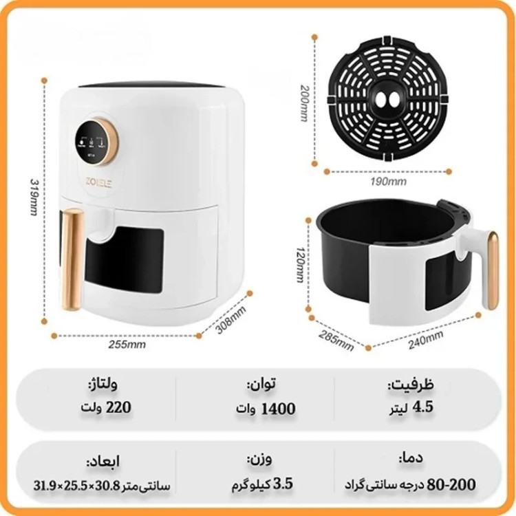 سرخ کن بدون روغن هواپز 4.5 لیتری Zolele Air Fryer ZA004 4.5L