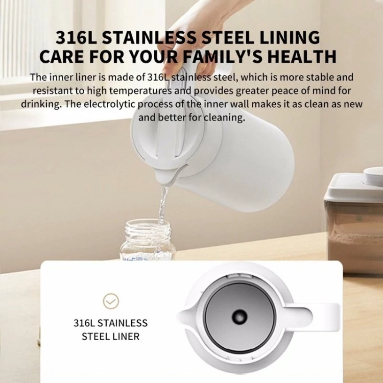 ظرفیت 1.8 لیتر دهانه ضد جریان برگشتی قفل کنترل دما با ماندگاری طولانی داخلی فولاد ضد زنگ 316L طراحی ایمنی انتشار فشار دوگانه دهانه کتری پهن برای تمیز کردن آسان 1.8 لیتر ظرفیت بالا پر از عملی بودن با طراحی داخلی 1.8 لیتری با ظرفیت بالا، میتوانید در هر زمان از نوشیدنی سالم لذت ببرید و بدن و ذهن خود را در طول روز تغذیه کرده و کیفیت زندگی خود را افزایش دهید. قفل سرد 24 ساعته تا زمانی که شما آماده باشید مایعات سرد را به مدت 24 ساعت در دمای کمتر از 15 درجه سانتیگراد نگهداری کنید. عایق 24 ساعته همیشه نوشیدنی شما را گرم نگه می دارد مایعات داغ را بیش از 45 درجه سانتیگراد به مدت 24 ساعت گرم نگه می دارد. طراحی عایق چند لایه با کیفیت در هسته خود ساخته شده است. طراحی قفل درجه حرارت چند لایه به طور موثر اتلاف گرما را به حداقل می رساند، بنابراین می توانید در هر زمانی که بخواهید در دمای دلخواه (گرم یا سرد) نوشیدنی میل کنید. طراوت ترمیمی در صورت تقاضا. به راحتی با فشار دادن و بلند کردن باز می شود رویه شیاردار را می توان به راحتی با استفاده از دو انگشت باز کرد و در عین حال از باز شدن تصادفی آن جلوگیری می کند تا تجربه نوشیدن شما تازه شود. داخلی فولاد ضد زنگ 316L از سلامت خانواده خود محافظت کنید پوشش داخلی از فولاد ضد زنگ 316L ساخته شده است که به دلیل پایداری در دمای بالا شناخته شده است. با آرامش بیشتر از نوشیدنی های مطمئن تر لذت ببرید. دیوار داخلی با استفاده از الکترولیز ساخته شده است که به حفظ تمیزی و طراوت کمک می کند و در عین حال تمیز کردن را آسان تر از همیشه می کند. باز شدن بدون زحمت با یک لمس برای ریختن زیبا دسته ارگونومیک به سبک اهرمی، ریختن صاف و بی دردسر را تنها با یک دست تضمین می کند. عملکرد آب بندی استثنایی از نشت حتی زمانی که کتری معکوس است جلوگیری می کند. یک ویژگی ایمنی متفکرانه برای محافظت از کل خانواده. دهانه ضد آب برای یک میز میز مرتب دهانه منقاری شکل جریانی یکنواخت را فراهم می کند و مایع را پس از ریختن قطع می کند و به طور موثر از پاشیدن، چکیدن و جریان برگشتی جلوگیری می کند. بدنه کتری و میز شما را خشک و تمیز نگه می دارد. آزادسازی فشار دوگانه برای محافظت مضاعف ایمنی در هنگام باز کردن و ریختن باز کردن درب و ریختن هر دو باعث فعال شدن شیر فشار شکن می شود و به سرعت فشار منفی داخل کتری را از بین می برد تا از خروج غیرمنتظره مایع داغ جلوگیری شود و در هنگام باز شدن درب و ریختن مایعات از ایمنی شما محافظت کند. دهانه کتری پهن برای پر کردن و تمیز کردن راحت با طراحی دهانه 71 میلی متری آن، پر کردن کتری با آب بدون دردسر است. همچنین امکان تمیز کردن عمیق را با یک دست فراهم می کند تا از تجمع کثیفی و کثیفی جلوگیری کند.