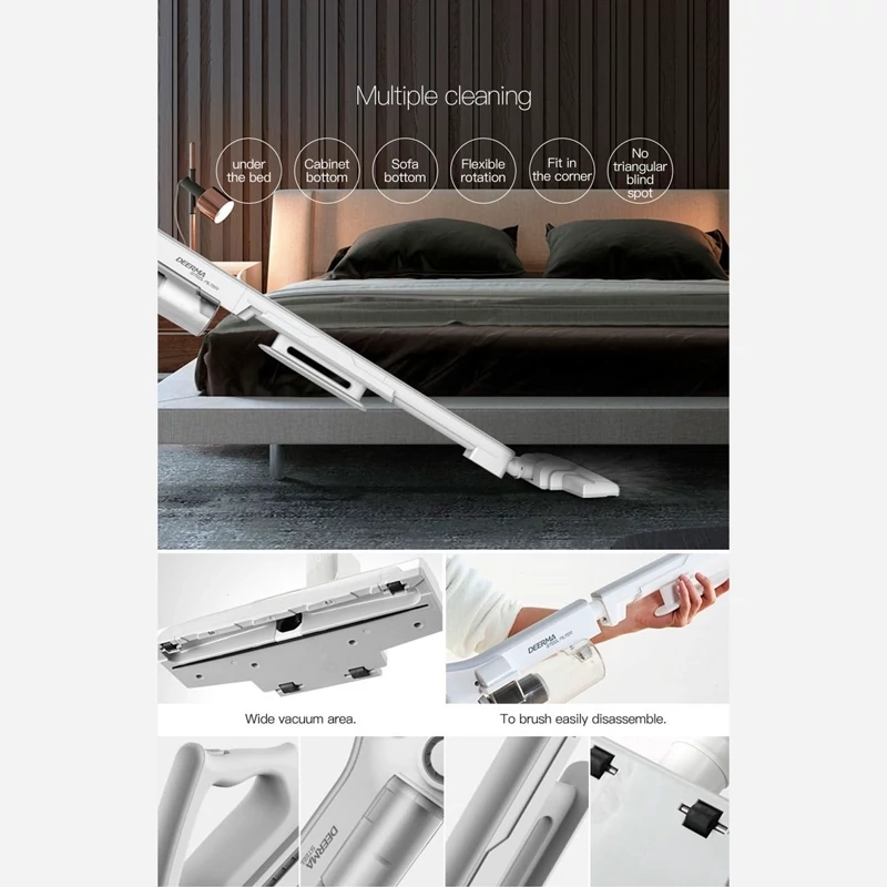 دیدگاه ها بررسی تخصصی Xiaomi DX700 Deerma Vacuum Cleaner افراد مختلف برای تمیز کردن منزل یا محل کار خود همواره به دنبال خرید تجهیزات با کیفیت و عملکرد عالی هستند. شما می توانید از جارو برقی شیائومی درما مدل Deerma DX700 به روش های مختلف برای نظافت تمام قسمت های خانه استفاده کنید. اگر دوست دارید که با این محصول کاربردی و فاکتورهای متمایزکننده آن آشنا شوید، تا انتها با ما همراه باشید. مشخصات ظاهری جارو برقی شیائومی درما مدل Deerma DX700 یکی از مشکلات جاروبرقیهای معمول سختی جابجا کردن بدنه سنگین آن ها است. همچنین لوله های بکار رفته در این نوع وسایل، محدودیت های بسیاری را برای حرکت دادن آن ها به وجود میآورند. با تولید و عرضه انواع جاروبرقی دستی دیگر نیازی نیست که برای هر آلودگی کوچکی از جاروبرقیهای بزرگ استفاده کنید. برای ساخت این وسیله از پلاستیک سبک و مقاوم ABS و پلی کربنات استفاده شده است. این مواد باعث افزایش استحکام، کاهش وزن و قیمت این محصول شده است. بنابراین جارو عصایی درما مدل DX700 در حالت ایستاده تنها 2.2 کیلوگرم وزن دارد. این در حالی است که هنگامی که این دستگاه را به صورت جارو دستی تغییر شکل دهید، وزن آن به 1.5 کیلوگرم کاهش می یابد. لازم به یادآوری است که این محصول در دو رنگ خاکستری تیره و سفید با ابعادی برابر با 1123*288*260 میلیمتر ساخته شده است. وزن سبک و ساختار ارگونومیک این جاروبرقی باعث شده است که در استفاده طولانی مدت فشار کمتری به کمر و شانه های شما وارد شود. در ضمن طراحی منحصربهفرد این مدل از جارو برقی درما امکان حرکت آن را در زوایای مختلف میسر می سازد. به همین دلیل شما حتی میتوانید گرد و غبار نشسته روی کاغذ دیواری و پرده های منزل خود را نیز بگیرید. در جارو برقی Deerma DX700 شیائومی یک مخزن زباله قابل جداسازی با ظرفیت 0.8 لیتر طراحی شده است. این میزان محفظه نگهداری زباله باعث می شود که شما نیازی به جابجایی جاروبرقیهای سنگین در خانه نداشته باشید. همچنین برای این وسیله نظافت هوشمند کابلی با طول 4.5 متر تعبیه شده است که حرکت در منطقه بزرگتری را فراهم میسازد. همچنین سه سَری مجزا نیز برای تمیز کردن سطوح مختلف، درزهای بین سرامیک ها و سطوح پارچه ای در بسته بندی این دستگاه قرار داده شده است. مشخصات جارو برقی شیائومی درما مدل Deerma DX700 طراحی دو در یک جارو برقی درما شیائومی مدل Deerma DX700 طراحی دومنظوره ( دو در یک ) جارو برقی درما Deerma DX700 از جمله مهمترین ویژگی های این محصول به شمار می رود. در واقع شما با خرید این دستگاه به دو جاروبرقی جداگانه با کاربرد متفاوت دسترسی پیدا می کنید. این جارو عصایی شیائومی را می توانید در حالت عادی برای تمیز کردن و گردگیری سطوح بزرگی مانند فرش و پارکت استفاده کنید. همچنین دسته بلند این وسیله به ارتفاع 1123 میلیمتر باعث می شود که تمیز کردن مکان های موجود در ارتفاعات مانند پرده، کانال کولر و سقف ها آسان باشد. وجود دسته ای با ارتفاع بلند جارو کشیدن مکان هایی با دسترسی دشوار همچون زیر کابینت ها، مبل و تخت را نیز آسان می سازد. البته امکان جدا کردن بخش اصلی جارو از قسمت لوله آن نیز وجود دارد. در این صورت می توانید از امکانات این جارو برقی 2 در 1 شیائومی DX700 به صورت جارو برقی دستی بهره ببرید. از این حالت برای تمیز کردن سطوح کوچک تری مانند کوسن های مبلمان، گوشه های دیوارها و جمع کردن زباله های ریخته شده روی زمین استفاده می شود. عملکرد دو در یک جارو برقی شیائومی درما مدل Deerma DX700 قدرت مکش جاروبرقی مدل Deerma DX700 جارو برقی شیائومی درما مدل Deerma DX700 به یک موتور قدرتمند با توان 600 وات مجهز است. این موتور با چرخش 38000 دور در دقیقه قادر است که نیروی مکشی برابر با 15000 پاسکال تولید می کند. نیروی مکش فوق العاده قوی در کنار طراحی خاص دهانه این جاروبرقی انواع مختلف زباله و ذرات کوچک را از عمق سطوح مختلف جمع آوری می کند. در ضمن این جارو برقی شیائومی با تکیه بر قدرت مکش خود روند نظافت را تسریع می سازد. همچنین قیمت این محصول نیز نسبت به سایر نمونه ها