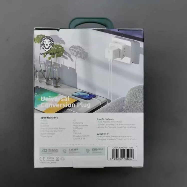 تبدیل برق جهانی 3 به 2 تایمردار گرین لاین Green Lion Universal Conversion Plug With Timer Function