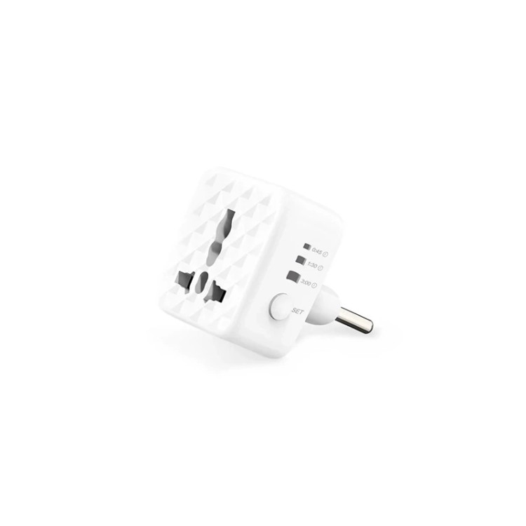 رنگ سفید . عملکرد تایمر . 3 حالت تایمر(45 دقیقه – 1.5 ساعت – 3 ساعت) . جمع و جور . سبک وزن . سازگاری جهانی . پین اتحادیه اروپا . محافظت از اتصال کوتاه . متریال پلی کربنات . حداکثر جریان انتقال 10A . ولتاژ ورودی 220 ولت