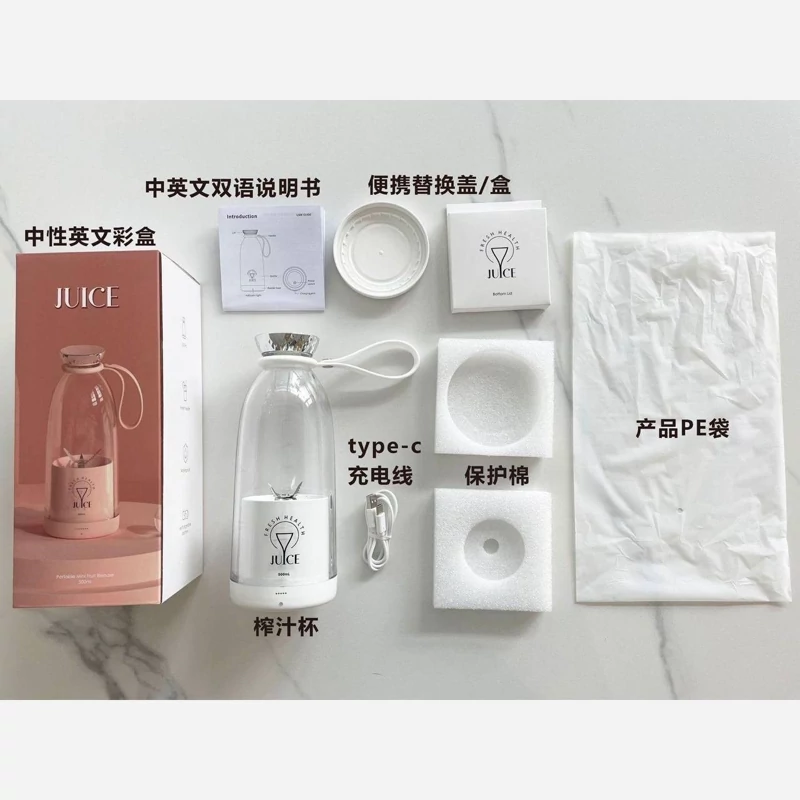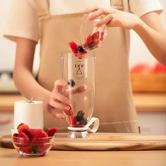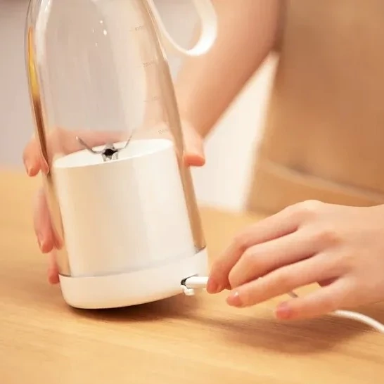 محفظه به طوری طراحی شده که نیاز به لیوان ندارد و شما بعد از مخلوط کردن میتوانید با باز کردن درب نوشیدنی خود را میل کنید. کار با شیکر fresh juice 500ml راحت است و شما برای مخلوط کردن دکمه که بر روی بدنه هست را روشن کنید تا شروع به مخلوط کردن کند، همچنین موتور مخلوط کن مجهز به قفل امینتی است که از خطرات احتمالی جلو گیری کند. ابعاد کلی 22 سانتی متر در قطر 9 سانتی متر هست که وزن 741 گرمی دارد با توجه به وزن ابعاد به راحتی میتوان آن را حمل کرد و یا در حال حرکت از آن استفاده کرد. موتور و تیغه موتور شیکر fresh juice 500ml سرعتی بین 500 تا 750 وات دارد، این سرعت برای خرد کردن انواع سبزی جات و یخ مناسب است که میتواند سبزی جات و میوه را به صورت صاف یک دست مخلوط کند. با یک بار فشار دادن دکمه مخلوط کن شروع به کار میکند با فشار دادن دوباره دکمه سرعت موتور بیشتر میشود. فقط توجه داشته باشید در قسمت انتهای درب یک خط وجود دارد و میوه سبزی جات شما نباید از سطح خط بالا تر بیاید. تیغه و محفظه ضد آب هست و به راحتی میتوانید بعد از مخلوط کردن تیغه را بشویید. باتری و شارژر fresh juice 500ml شیکر fresh juice 500ml در ظرفیت 500 میلی لیتر مجهز به باتری باتری لیتیوم یون با ضرفیت 2400 میلی آمپر هست. با یک ساعت شارژ میتوانید بین 10 تا 15 مرتبه وعده آبمیوه یا اسموتی درست کنید. شارژر این مخلوط کن در قسمت پایینی موتور و از نوع type-c هست که با یک درپوش سیلیکونی از آن محافظت میشود. همچنین در قسمت بدنه چراق های LED برای نشان دادن شارژ باقی مونده مجهز است.