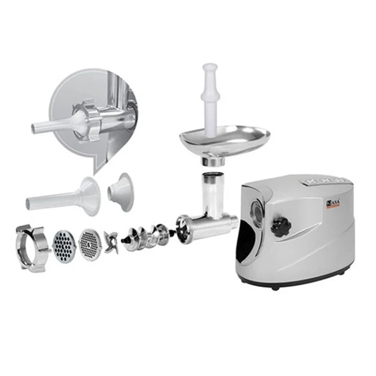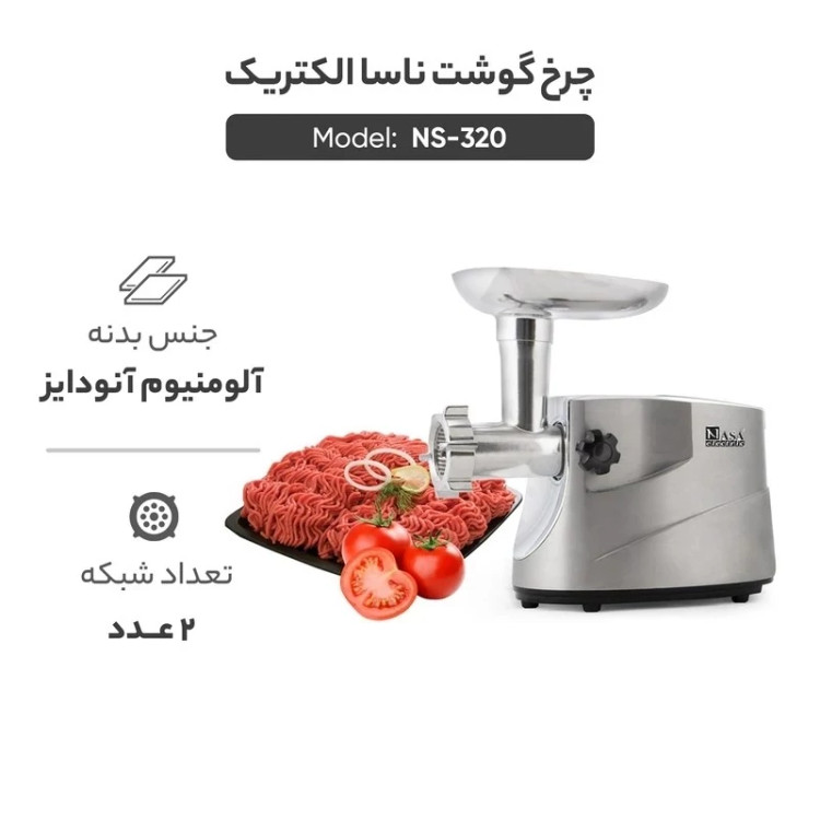 چرخ گوشت ناسا الکتریک مدل NS-320 از دستگاههای کاربردی در آشپزخانه است، که توسط برند ناسا الکتریک تولید شده است. این دستگاه هم طراحی زیبایی دارد و هم از موتور قدرتمندی با توان مصرفی 2000 وات پشتیبانی میکند. قابلیت تنظیم سرعت در دو سطح 1 و 2 از دیگر ویژگیهای این دستگاه است، که معمولاً از سطح سرعت 1 برای چرخ کردن گوشت استفاده میکنند. بدنه این دستگاه از جنس آلومنیوم آنودایز است، که از مقاومت بسیار بالایی در برابر خوردگی و سایش برخوردار است. یک رنگ بودن بدنه این چرخ گوشت حس نوستالژی به افراد می بخشد و یادآور چرخ گوشتهای قدیمی است.