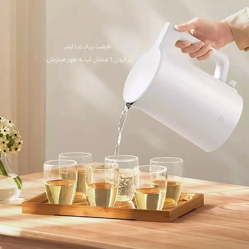 کتری برقی Mijia Kettle N1 با توان 1500 وات و المنت گرمایی حلقوی، آب را در کمتر از 5 دقیقه به نقطه جوش میرساند. این عملکرد سریع مخصوصاً زمانیکه عجله دارید یا مهمان ناگهانی دارید، بسیار کاربردی است.