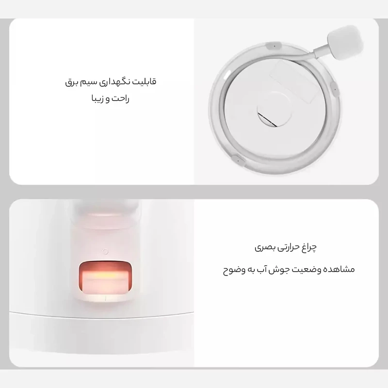 محفظه سیم در پایه برای نظم بیشتر روی میز یا کابینت.