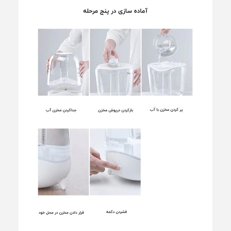 کار بخار سازی این دستگاه توسط المنت های التراسونیک انجام میشه.