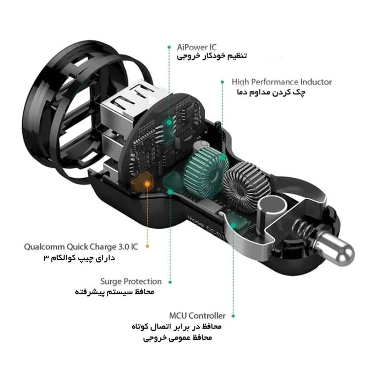 دارای یک پرت فست شارژ3.0 + دو پرت شارژر تنظیم شونده AiPower