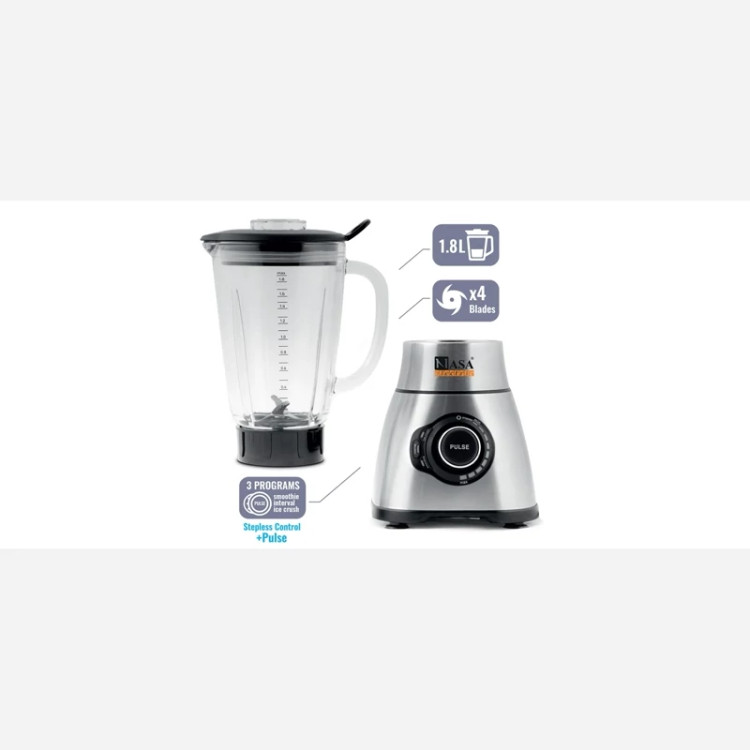 مخلوط کن ناسا الکتریک NS-1961 یک دستگاه تک کاره و قدرتمند است، که برای مخلوط کردن و ترکیب نمودن مواد اولیه مختلف و تهیه انواع دسر و اسموتی و نوشیدنی و ... استفاده میشود. به لطف حضور موتور قدرتمند با حداکثر توان 1800 وات امکان تهیه انواع ترکیبهای یکنواخت و یکدست میسر شده است. پیچ ولومی انتخابگر امکان تنظیم نمودن سرعت در 10 سطح را فراهم آورده است. همچنین عملکردهای کاربردی نظیر عملکرد خرد کردن یخ ICE CRUSH و عملکرد تهیه اسموتی SMOOTHIE و عملکرد وقفهای INTERVAL نیز در این مخلوط کن تعبیه شدهاند. این عملکردهای متنوع و کاربردی از این مخلوط کن یک دستگاه حرفهای و چند کاره ساختهاند.