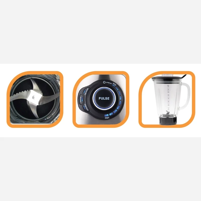 تیغههای مخلوط کن؛ تیغههای به کار رفته در این مخلوط کن از نوع چهار پره بوده که با کمک این چهار پره ترکیب یکنواخت و یکدستی بوجود میآید. تیغههای استیل قدرت برندگی و مخلوط کردن بالایی داشته و از قابلیت تیز شدن مجدد نیز برخوردارند.