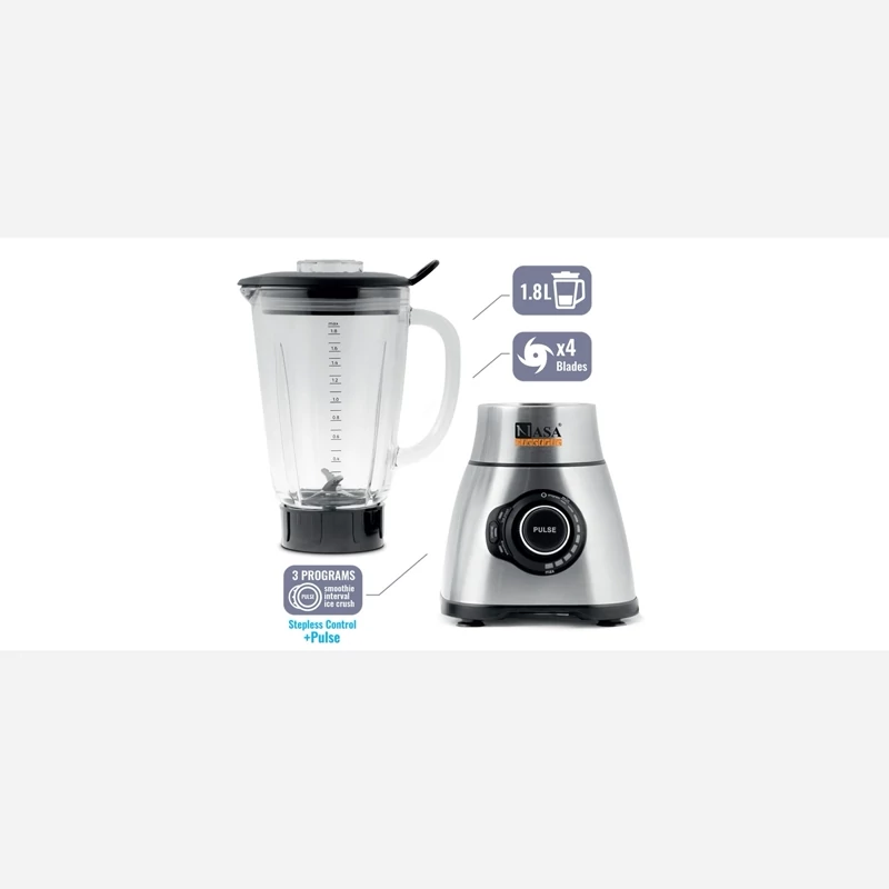 مخلوط کن ناسا الکتریک NS-1961 یک دستگاه تک کاره و قدرتمند است، که برای مخلوط کردن و ترکیب نمودن مواد اولیه مختلف و تهیه انواع دسر و اسموتی و نوشیدنی و ... استفاده میشود. به لطف حضور موتور قدرتمند با حداکثر توان 1800 وات امکان تهیه انواع ترکیبهای یکنواخت و یکدست میسر شده است. پیچ ولومی انتخابگر امکان تنظیم نمودن سرعت در 10 سطح را فراهم آورده است. همچنین عملکردهای کاربردی نظیر عملکرد خرد کردن یخ ICE CRUSH و عملکرد تهیه اسموتی SMOOTHIE و عملکرد وقفهای INTERVAL نیز در این مخلوط کن تعبیه شدهاند. این عملکردهای متنوع و کاربردی از این مخلوط کن یک دستگاه حرفهای و چند کاره ساختهاند.