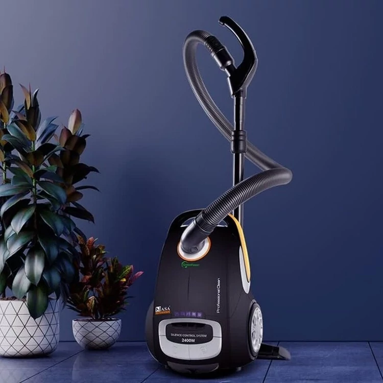 جاروبرقی ناسا الکتریک مدلNS-9096 جاروبرقی کیسهدار ناسا الکتریک یکی از دستگاههای کاربردی و با کیفیتی است که برای مصارف خانگی و موارد مشابه مورد استفاده قرار میگیرد. این جاروبرقی دارای کیسه دائمی از جنس پارچه است. ظرفیت کیسهی دائمی 3.5 الی 4 لیتر میباشد و قابلیت شستشو هم دارد. موتور قدرتمندی که برای این دستگاه در نظر گرفته شده دارای توان مصرفی 2400 وات میباشد و از قدرت مکش 380 وات برخوردار است. وجود فیلترهای بهداشتی در این دستگاه از خروج هوای آلوده و گرد و خاک به محیط جلوگیری میکند. اگر قصد خرید جاروبرقی دارید، پیشنهاد میشود این جاروبرقی قیمت مناسب را در لیست خریدتان قرار دهید. طراحی و ساختار همانطورکه در بالا نیز اشاره کردیم، جاروبرقی ns-9096 از نوع کیسهدرا است. بنابراین در دستهی جاروبرقیهایی قرار میگیرد که بهصورت افقی یا خوابیده استفاده میشوند. در محفظهی داخلی دستگاه یک کیسهی دائمی تعبیه شده، همچنین چرخهای بزرگی در زیر بدنهی دستگاه قرار گرفتهاند که امکان حرکت راحت و روان بر روی سطوح مختلف را برای جاروبرقی فراهم میکنند. گفتنی است که دستهای که بر بالای بدنه قرار گرفته حمل و جابجایی دستگاه را راحت تر خواهد کرد. کار کردن با این دستگاه به سادگی فشار دادن چند کلید است. بر روی بدنهی اصلی کلیدی برای روشن/خاموش کردن دستگاه، کلیدی برای جمع کردن سیم، کلیدهای افزایش و کاهش قدرت مکش قرار گرفته است. وجود نمایشگر شما را از سطح مکش مورد استفاده آگاه میسازد. یکی دیگر از ویژگیهای ظاهری جاروبرقی ناسا الکتریک ns-9096 سیستم پارک دستگاه است. بر روی بدنه گیرههایی برای نگهداری لولهی خرطومی و تلسکوپی دستگاه تعبیه شده که زمان نگهداری و عدم استفاده از دستگاه، میتوانید جاروبرقی را در حالت پارک نگه دارید. گیرهی نگه دارنده که در قسمت عقبی جاروبرقی واقع شده و شیار زیر بدنه نیز برای همین منظور استفاده میشوند. لولههای خرطومی و تلسکوپی لولهی خرطومی یکی دیگر از ویژگیهای مهم در جاروبرقی است که باید به آن توجه کنید. لولهی خرطومی تعبیه شده در این مدل از جنس پلاستیک با کیفیت بوده و در محل اتصال به بدنهی اصلی یا همان دهانهی مکش قابلیت چرخش 360 درجه دارد. همین قابلیت شعاع عملکرد دستگاه را ارتقا داده و امکان استفادهی راحت را فراهم آورده است. انتهای لولهی خرطومی به زانویی یا دستهی عصایی وصل خواهد شد، این دستهی عصایی با طراحی آرگونومیکی که دارد استفاده از جاروبرقی را راحت تر کرده است. لولهی تلسکوپی که به دستهی عصایی وصل میشود یکی دیگر از قطعات این دستگاه است. لولهی تلسکوپی قابلیت تنظیم ارتفاع دارد و با کمک ضامنی که بر روی آن قرار گرفته، امکان باز و بسته کردن و تنظیم ارتفاع آن فراهم شده است. جنس این لوله ازفلز با روکش ضد زنگ میباشد و بر اثر استفادهی طولانی مدت با زنگ زدگی و فرسودگی مواجه نمیشود. توان مصرفی و قدرت مکش جاروبرقی توان مصرفی و آنچه که خریداران آن را به عنوان قدرت مکش میشناسند، یکی از مهمترین پارامترها در خرید جاروبرقی است. توان مصرفی جاروبرقی ns-9096 ناسا الکتریک 2400 وات است و این یعنی میزان مصرف جاروبرقی در هرساعت 2400 وات است. در واقع هر چه توان مصرفی یک دستگاه بیشتر باشد به معنای قدرت بیشتر و مصرف برق بیشتر میباشد. اما آنچه که در جاروبرقی بیشتر از توان مصرفی اهمیت دارد، قدرت مکش است. قدرت مکش در این مدل 380 وات میباشد و از پس جارو کردن و تمیز کردن سطوح مختلف برمیآید. قابلیت تنظیم قدرت مکش یکی دیگر از ویژگیهای جاروبرقی ناسا الکتریک ns-9096 است. میتوانید متناسب با نوع سطح قدرت مکش دستگاه را تنظیم نمود. معمولاً برای سطوح سرامیکی و پارکت و سطوح بدون پوشش از بالاترین سطح مکش دستگاه استفاده میشود و برای پرده و منسوجات از پایینترین سطح مکش. فیلترهای بهداشتی جاروبرقی جاروبرقی ناسا الکتریک NS-9096 دارای فیلترهای بهداشتی و با کیفیتی است که در طی چند مرحله هوای خروجی را تصفیه خواهند کرد. یکی از فیلترهایی که در محل خروجی هوا به کار رفته است، فیلتر م