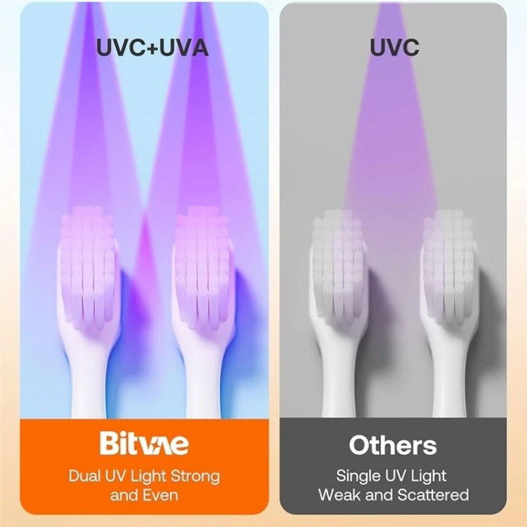 قلب تپنده Bitvae X122 فناوری نور UV-C است که توانایی از بین بردن تا 99.9 درصد باکتریها و میکروبهای مضر روی برس مسواک را دارد. این همان فناوریای است که در بیمارستانها و مراکز درمانی برای ضدعفونی ابزار استفاده میشود.
