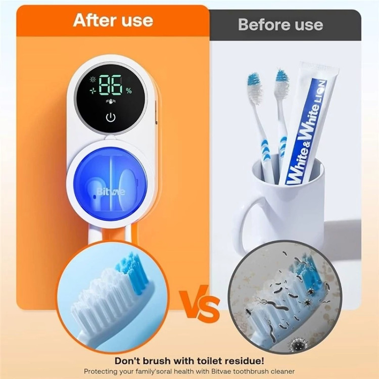 با استریلایزر UV هوشمند Bitvae X122، مسواک شما همیشه تمیز، خشک و بدون باکتری میماند. طراحی شیک، سنسور هوشمند، باتری بادوام و نصب آسان بدون نیاز به سوراخکاری—یک انتخاب بهداشتی برای روتین روزانه.